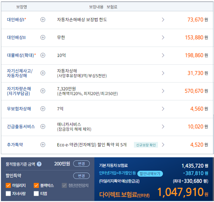그래서 이번에는 비교 사이트를 활용해서 저에게 가장 적합한 차보험 가입을 준비했습니다.본인 명의의 차량을 소유한 운전자는 무조건 가입해야 하는 법적 과제 상품이기도 합니다.다만 이러한 자동차보험료는 꾸준히 상승하고 있어 많은 운전자들의 불만을 사고 있습니다.이런 점 놓치지 말고 확인해주시면 상품료를 낮출 수 있으니까요.자가용과 사업용 자동차가 맥시멈 230만원, 90만원까지 내야 하는 부분에 비하면 적게 느껴질 수 있으니 굳이 지출하지 않아도 되는 부분이기 때문에 기간 내 의무계약을 맺는 것이 좋습니다.