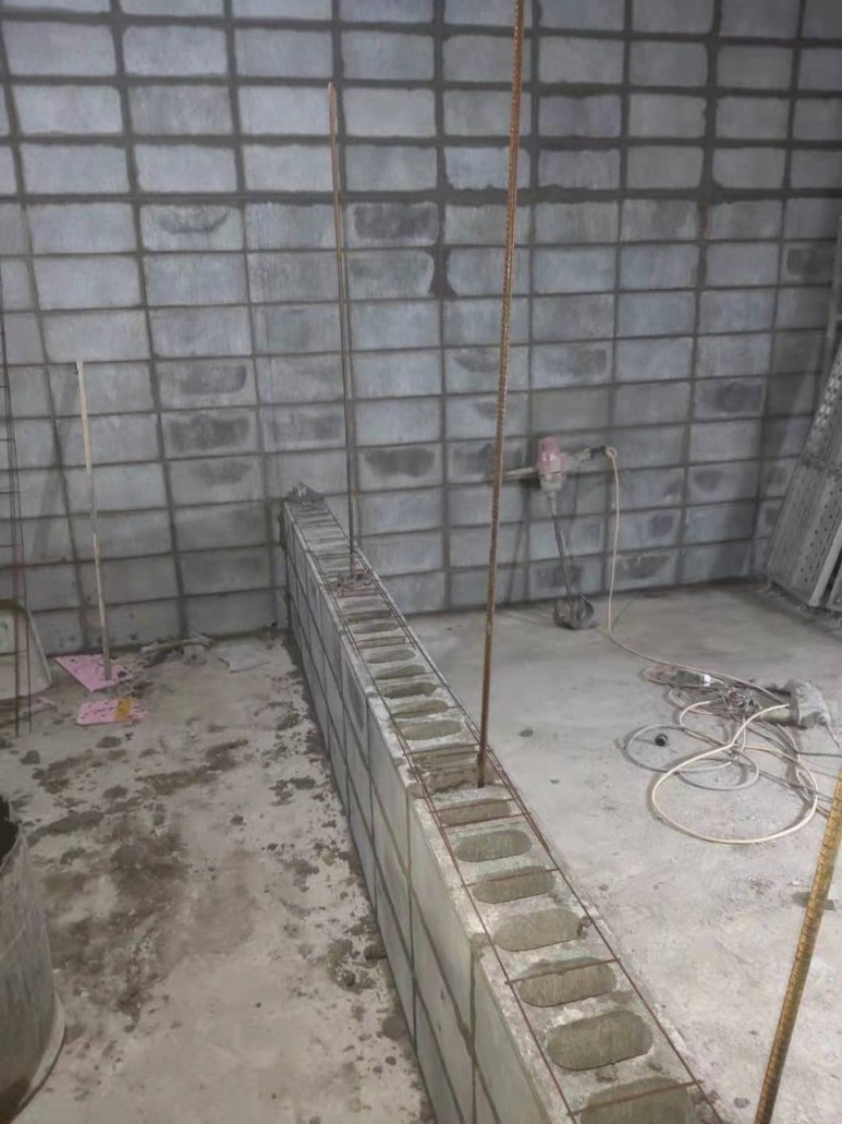 블록을 쌓을 때 개구부 위의 상인방 양쪽 끝에서 20cm 이상 딱 맞게 설치해야 하는데 사진상으로도 10CM로 안보이네요.