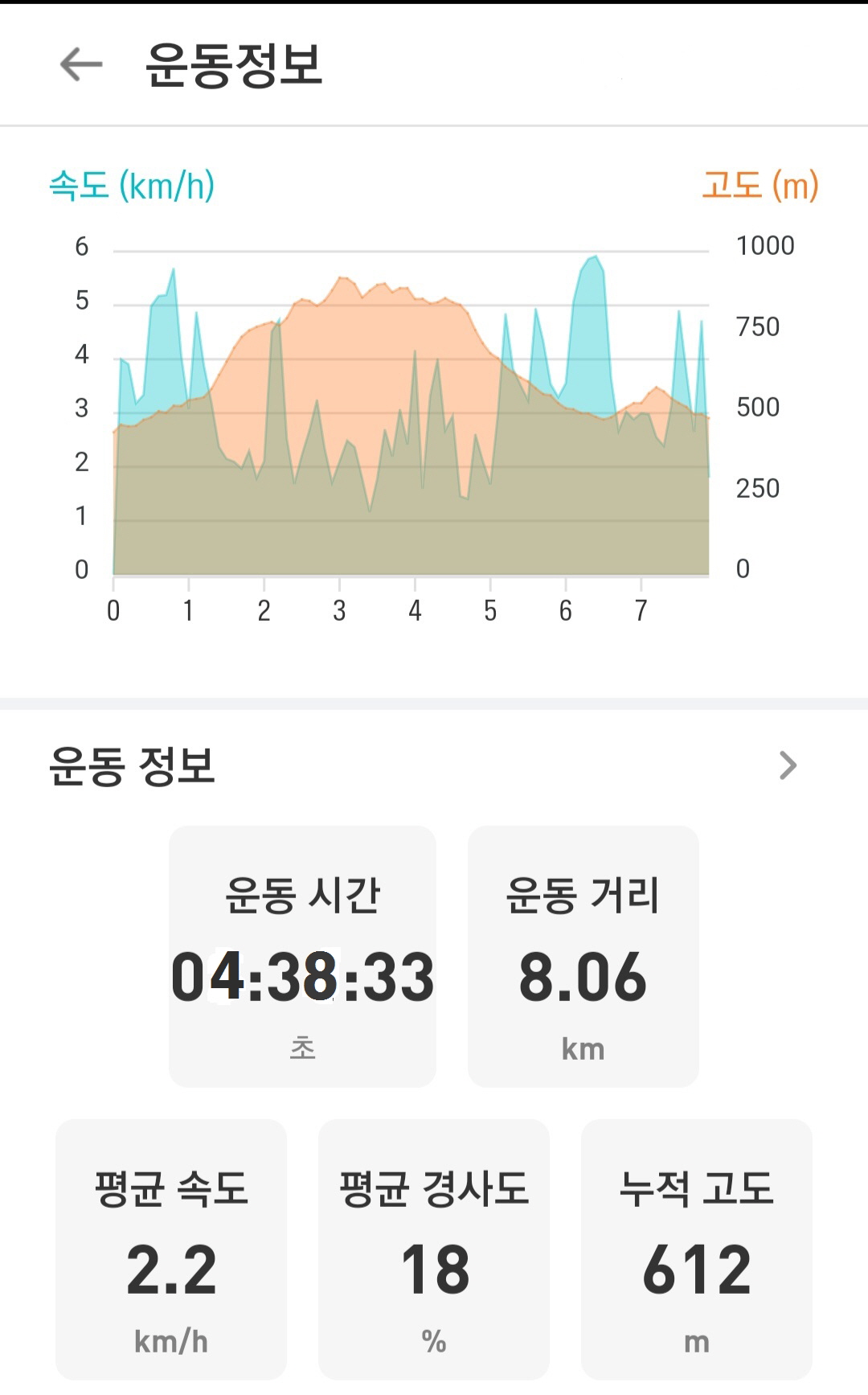 ■ 하이킹 시간: 8일0.06km / 4: 34분 소요 (점심 멀리/ 안심하다 여유 있는)