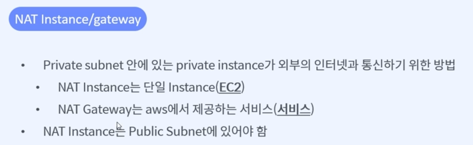 프라이빗 서브넷은 격리된 영역이며 결국 AWS 서비스를 사용하려면 인터넷에 접속하여 AWS에 연결해야 합니다.