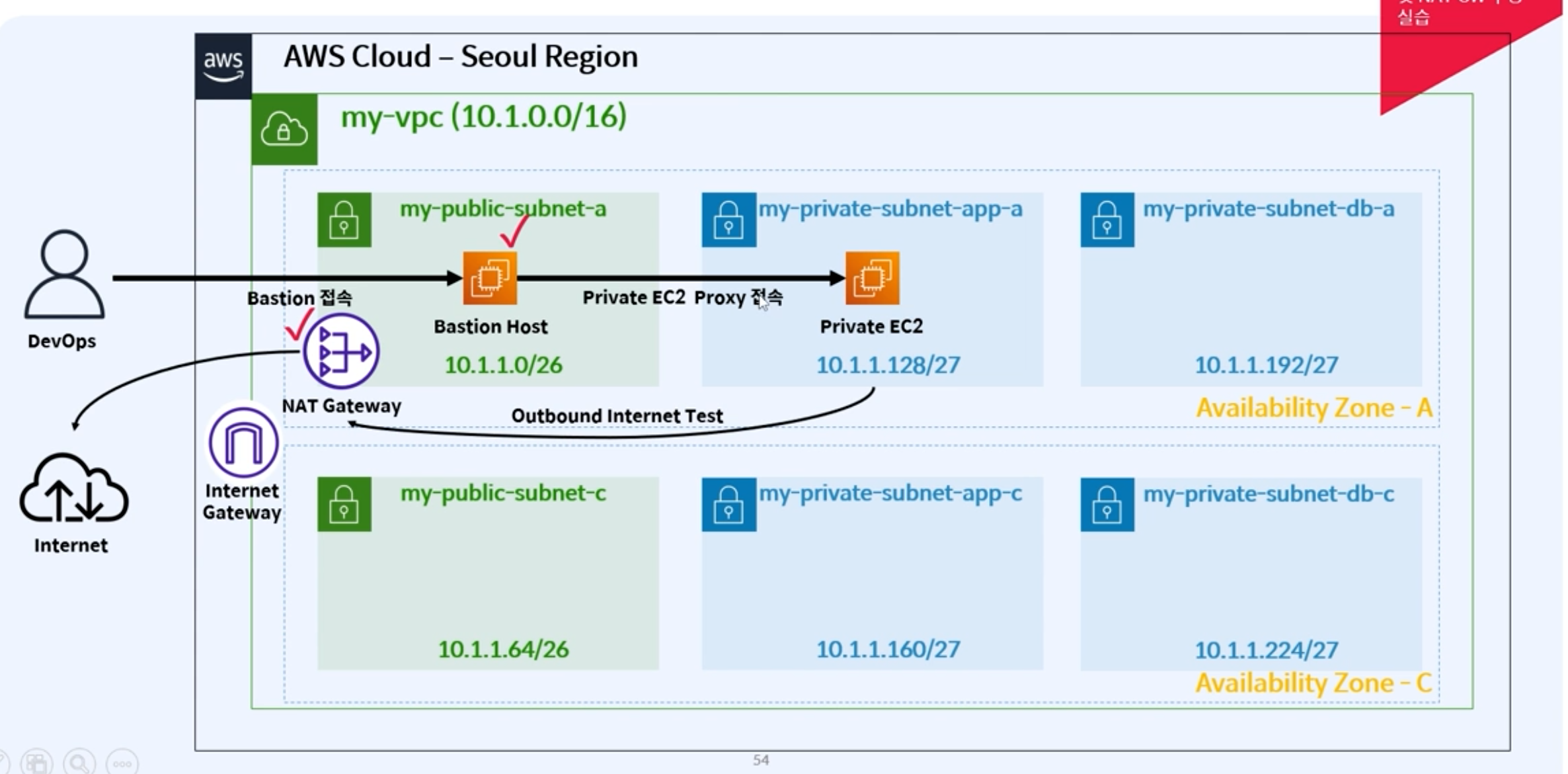 8. 서브넷 my-private-subnet-db-a CIDR 추가: 10.1.1.192/27