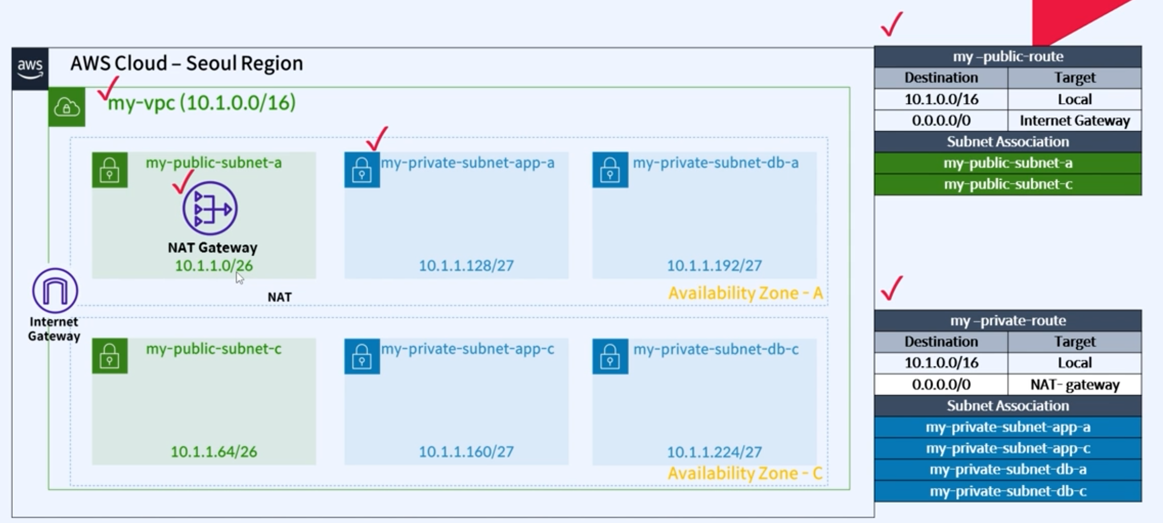 5. 서브넷 my-public-subnet-c CIDR 추가: 10.1.1.64/26