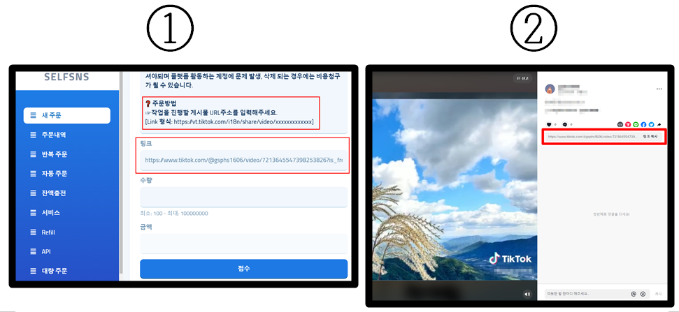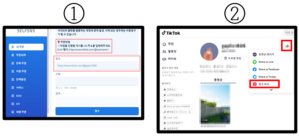 모든 주문 방법은 상품마다 다르며 “ID” 또는 “post url”이 필요합니다.